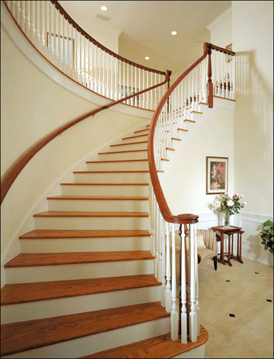 Với những ngôi biết thự không gian rộng rãi thì không gian cầu thang là nơi chủ nhà muốn khoe sự hiện đại, phóng thoáng và tiện nghi cũng là một điều dễ hiểu. Không phải ai cũng có thể hy sinh không gian ở tầng một để có được một chiếc cầu thang hiện đại chỉ lên tầng 2. Đối với cầu thang đẹp có những bậc đầu tiên theo hình bán nguyệt lát đá thì không phải ai cũng có khả năng làm nổi bật ngôi nh