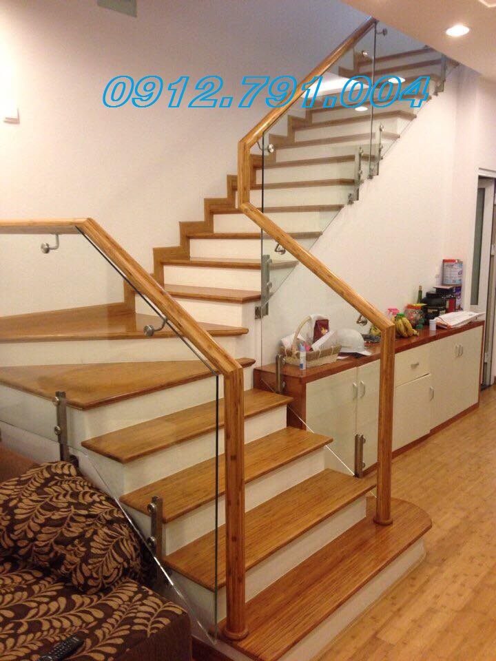 -       Kính: Kính cường lực được sử dụng nhiều trong cầu thang, nó được nhiều người lựa chọn bởi tính an toàn cũng như hiện đại của kính mang lại. Điều đặc biệt là khi có va chạm mạnh, kính cường lực không vỡ vụn như thủy tinh mà vỡ thành các miếng lớn có góc tù, không ảnh hưởng cho gia chủ trong quá trình va đập.